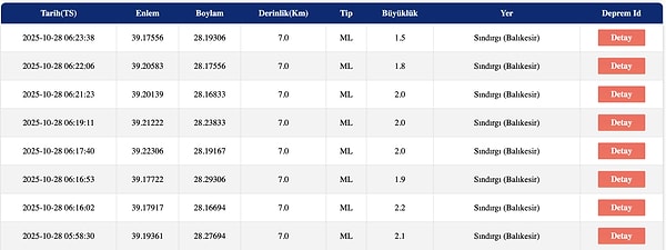 Son olarak, 27 Ekim’de saat 22.48’de İstanbul’da hissedilen bir deprem yaşandı. Bu deprem, Balıkesir’in Sındırgı ilçesinde gerçekleşti ve büyüklüğü 6.1 olarak açıklandı.