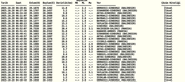 İşte, 28 Ekim Son Depremler Listesi