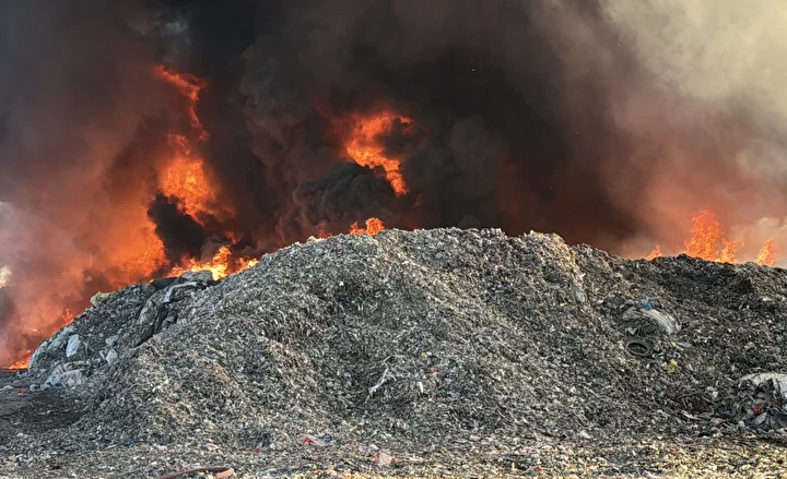 Küçükdikili Mahallesi’ndeki geri dönüşüm fabrikasında, atık malzemelerin bulunduğu alanda henüz belirlenemeyen nedenle yangın çıktı.