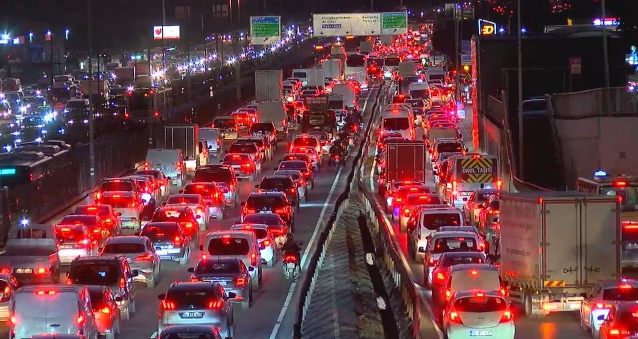 İstanbul’da trafik yoğunluğu yüzde 89’a ulaştı. Bir çok ana arterde trafik durma noktasına geldi.